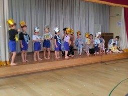 3~5歳児で収穫した玉ねぎを使って、玉ねぎパーティーをしました。みんなで協力して作った玉ねぎカナッペはとっても美味しかったよ。