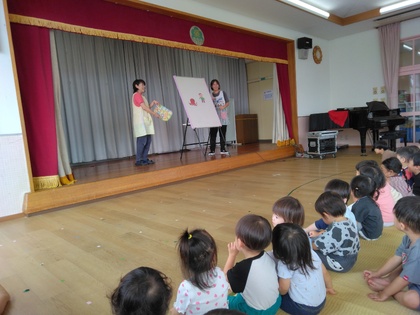 みんなでアンパンマンの人形劇を見て楽しみました。