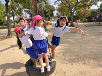 季節の草花や虫を見つけたり、ブランコに乗ったりして夢中で遊んでいます。