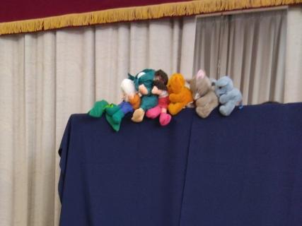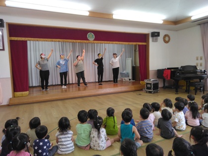 みんなでアンパンマンの人形劇を見て楽しみました。