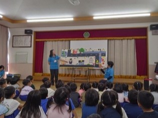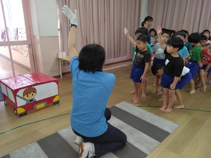 パネルシアターを見たり、横断歩道の渡り方を教えてもらったりして交通ルールを学びました。