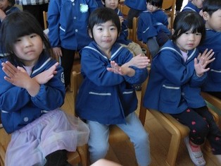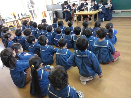 戦争にまつわる紙芝居や手遊びを見せてくれ、じゃんけん列車もして一緒に楽しむことができました。